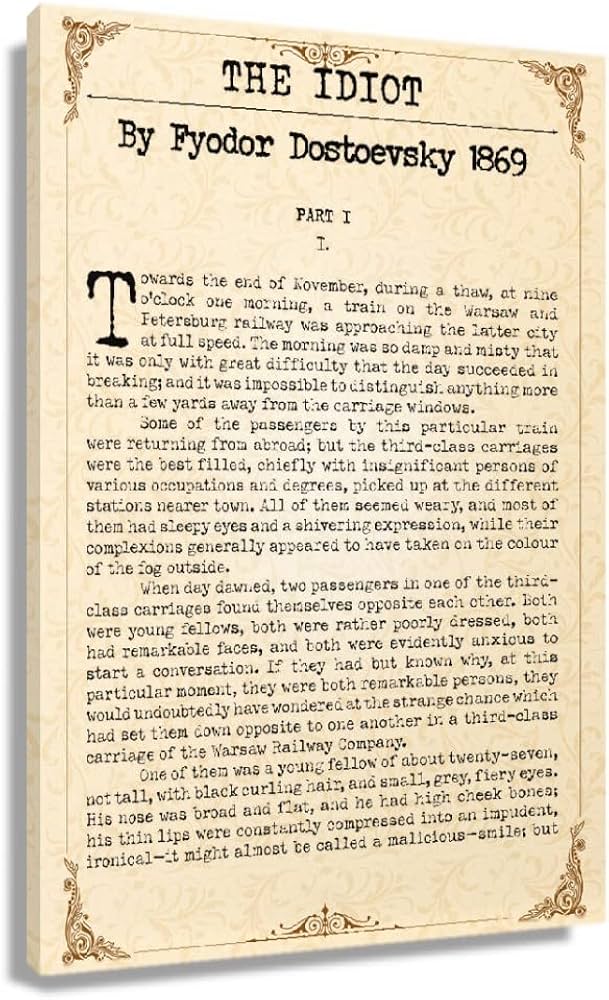 Amazon.com: The Idiot By Fyodor Dostoevsky Quote Poster Decor Room
