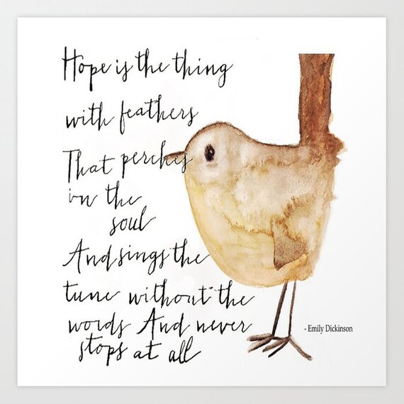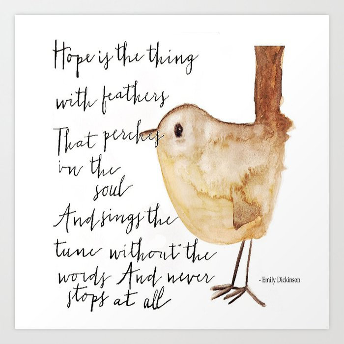 Hope Is The Thing With Wings Quote After The Ending | Dickinson, Emily dickinson, Hope is the thing : In “Hope” Is the Thing With Feathers, Dickinson imagines hope as a small bird that “perches in the soul”, never ceasing to sing and sounding sweetest in the eye of life’s storms. . In this blog, we’ve curated a list of “20 Best quotes from the world of literature, along with brief explanations”. “The only thing we have to fear is fear itself.” – Franklin D. Roosevelt “The only .